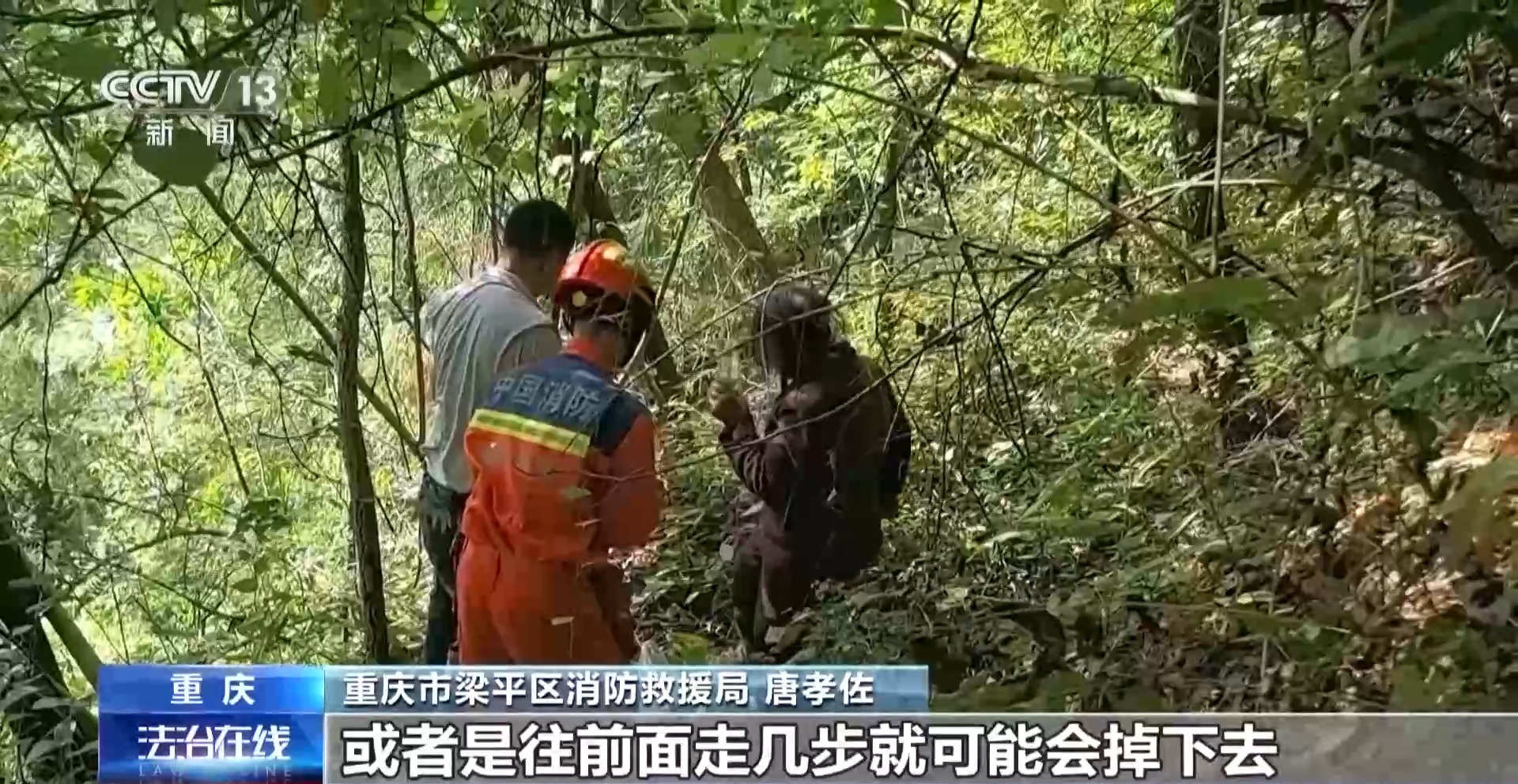 重庆市梁平区消防救援局 唐孝佐:我们非常后怕,如果她的情绪稍微激动一点,或者说往前面走几步就可能会掉下悬崖。那个悬崖大概有100米左右高,如果掉下去的话,可能会有生命危险。
