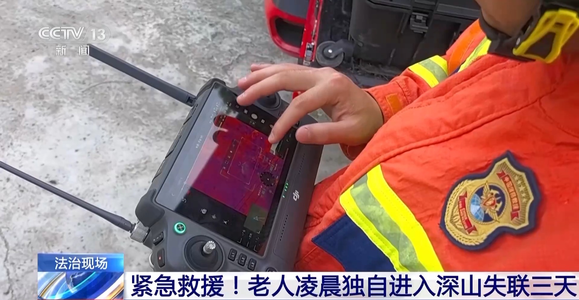重庆市梁平区消防救援局 唐孝佐:通过我们的喊话器,在100多米的高空中喊话、喊她的名字,说她的家人正在找她。她在树林里面听见后回应了,地面上的搜救人员听见声音,一边喊一边确认。我们再通过无人机热成像进行精确定位,找到了老人所在的位置。